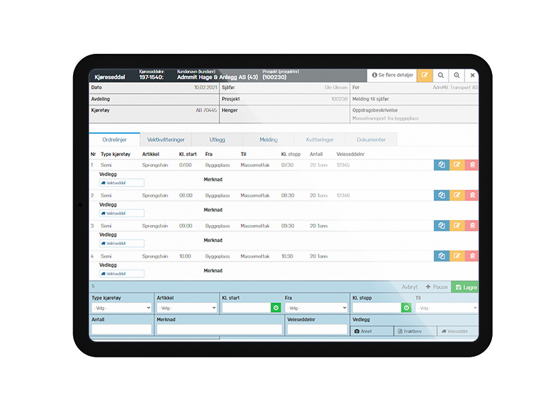 I oktober tok vi i bruk AdmMit sin digitale kjøreseddeltjeneste. Etter noen måneders bruk er vi svært fornøyde med løsningen og den langt bedre oversikten sammenlignet med tradisjonelle papirkjørelister. Vi sparer betydelig tid på fakturering, samtidig som kundene våre automatisk mottar kopi av kjøresedler hver dag for bedre innsyn i utført arbeid og kostnader.